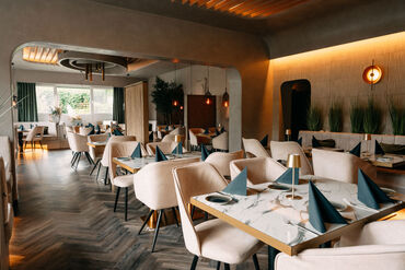 Unser Restaurant bietet für Sie einen großzügigen modern gestalteten Innenraum für bis zu 120 Personen. Eine Mischung aus erdigen Tönen, klaren Linien und sanfter Beleuchtung schafft ein unvergleichliches kulinarisches Erlebnis.